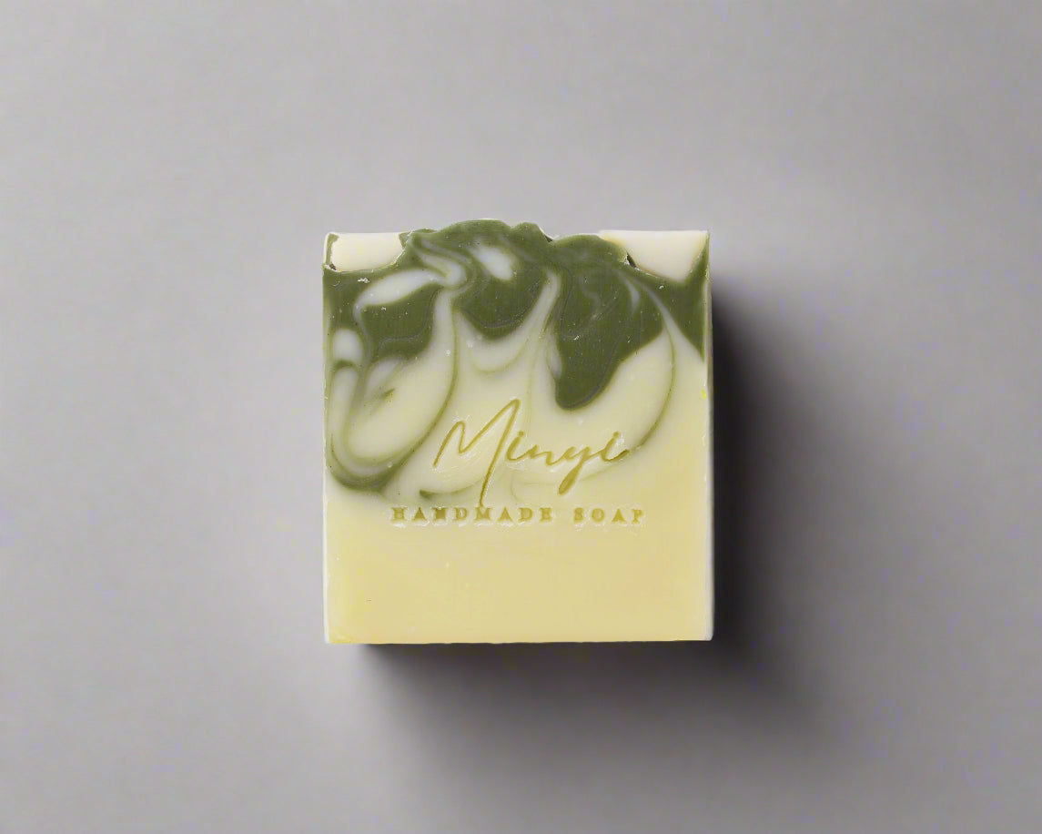 This cold process soap is handmade in small batches using olive oil, rapeseed oil, coconut oil, and castor oil. We add green clay to the mix. For a deeper, earthy green hue, we use chromium oxide green pigment, approved for cosmetic use.