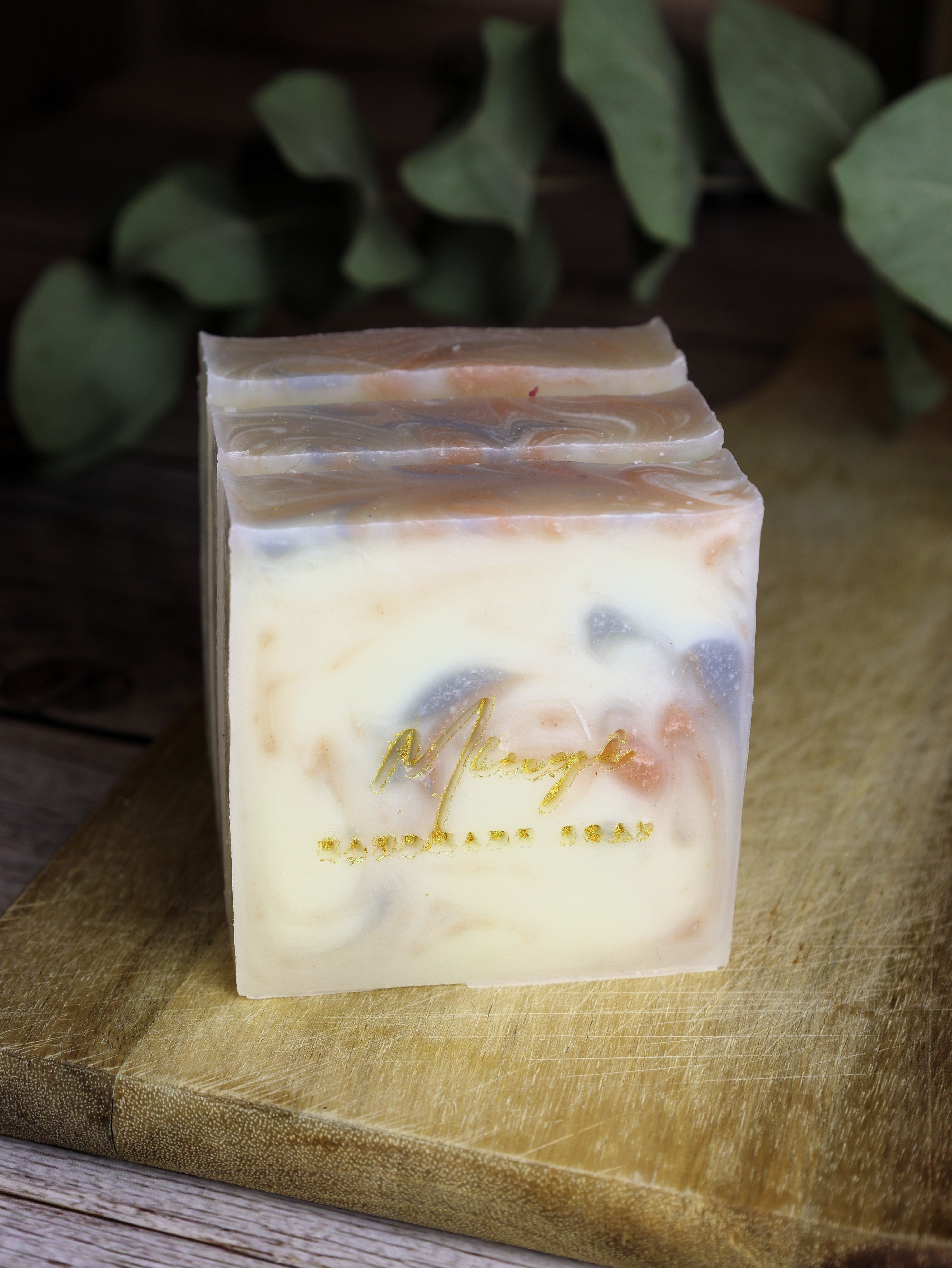 The scent is inspired by Earl Grey tea, with sweet-sour floral notes of bergamot layered over a rich, warm base. We use a phthalate-free fragrance oil to keep the scent light yet lasting. Each bar is poured, cut, and cured by hand using the traditional cold process method.